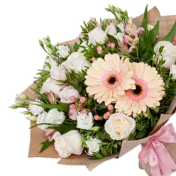 Букет из пионовидных роз и гипсофилы Искры счастья