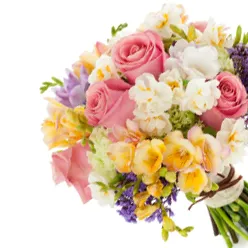 • Стандарт - роза - 3 шт., альстромерия - 5 шт., зелень, упаковка, лента