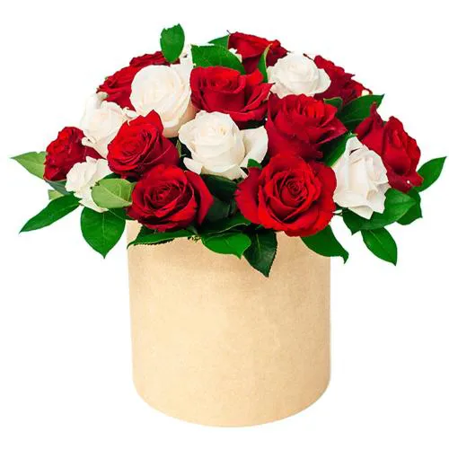 Вариант—Стандарт - роза - 11 шт.,зелень, оазис, шляпная коробка