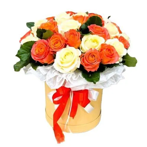 • Стандарт - эустома - 4 шт., роза - 5 шт., гвоздика - 7 шт., шляпная коробка, оазис