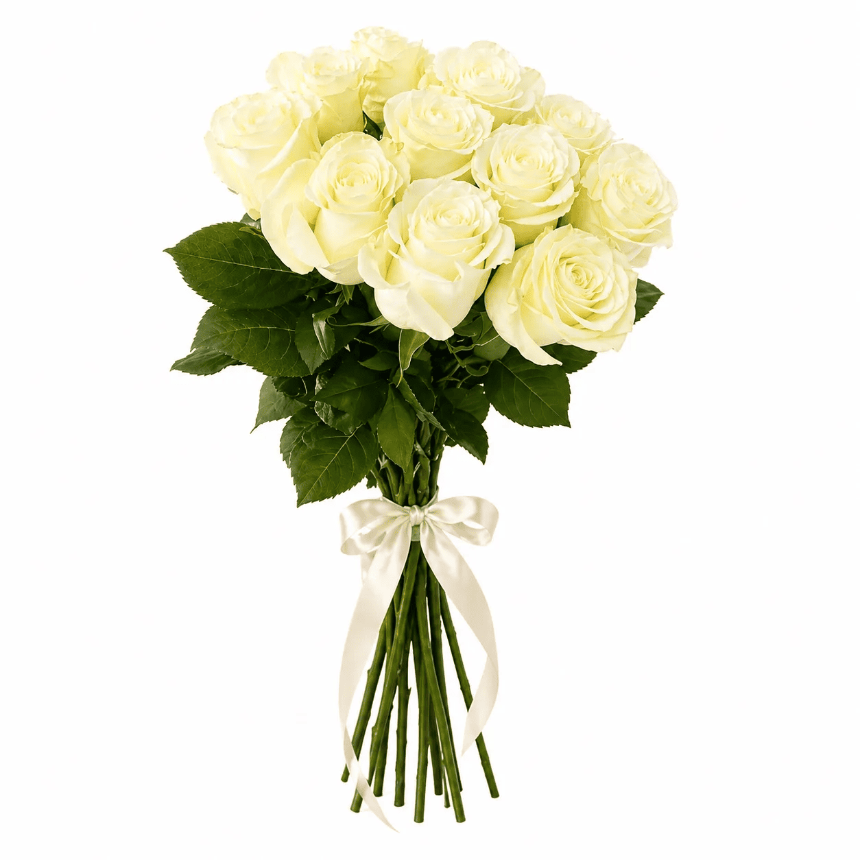 Букет из 11 белых роз под ленту - это символ искренности, уважения и светлых чувств. Белоснежные бутоны выглядят утончённо и благородно, создавая ощущение чистоты и гармонии. Такой букет не требует лишнего декора - его красота раскрывается в минимализме и естественной элегантности.