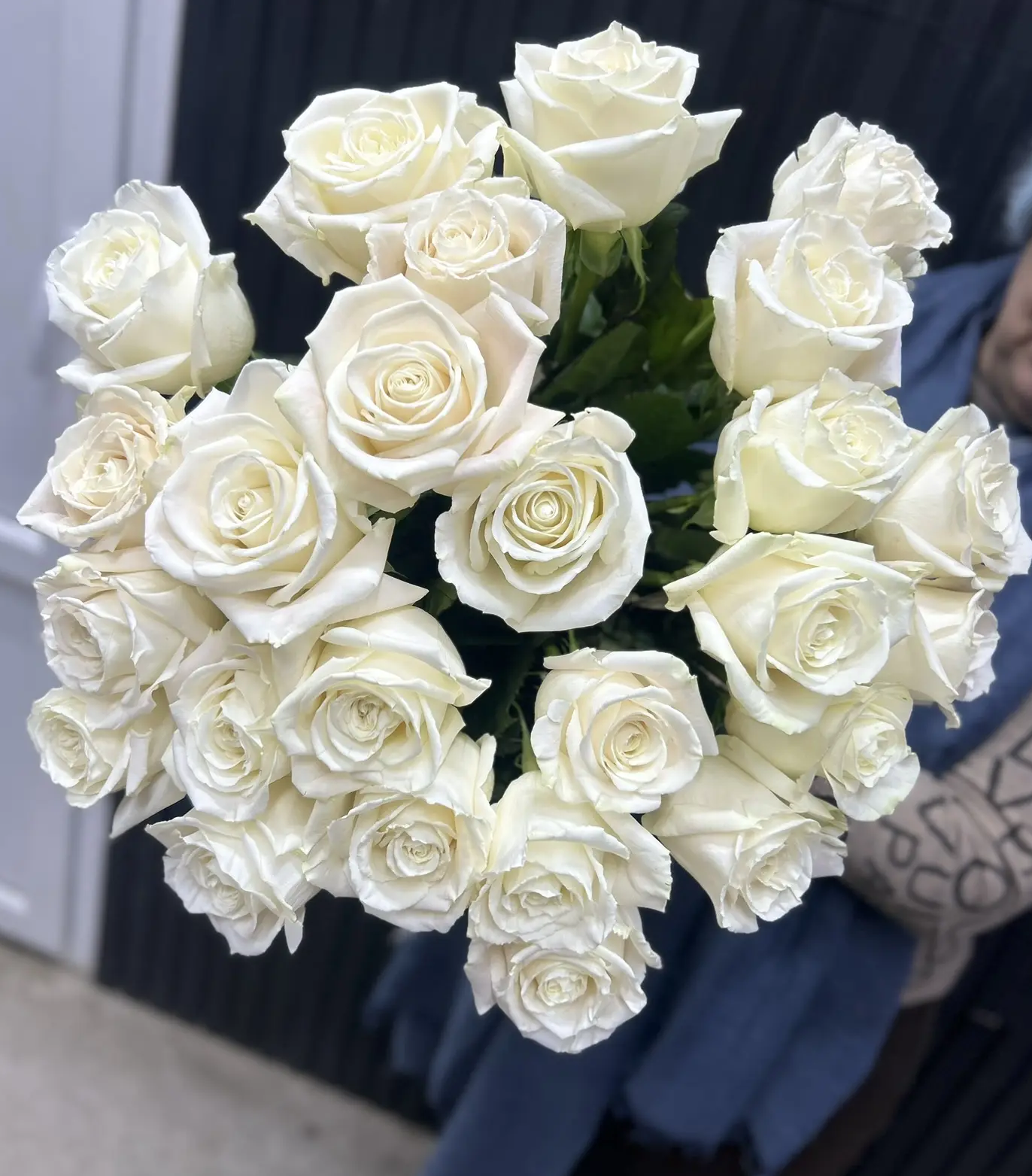 Нежный и утончённый букет из белых роз - воплощение чистоты, искренности и элегантности. Каждая роза словно говорит о светлых чувствах, наполняя букет особой гармонией и спокойствием. Цветы аккуратно собраны в изящный букет и перевязаны лентой, которая подчёркивает их благородную красоту. Такой букет станет идеальным подарком для признания в любви, выражения благодарности или создания трогательного момента.