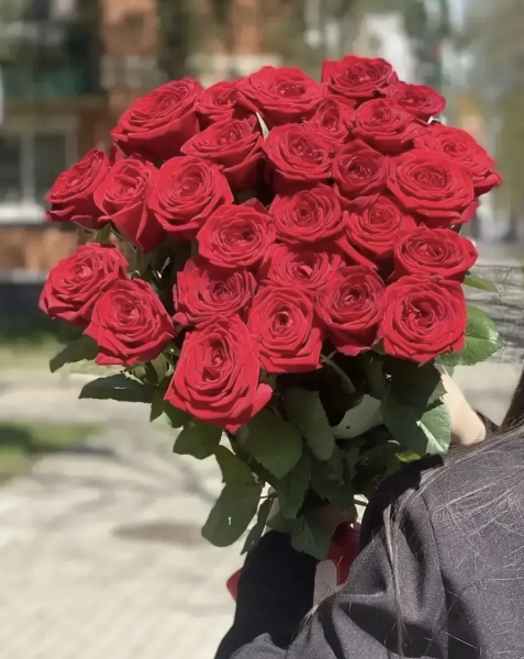 Классический букет из 27 красных роз, перевязанный изящной лентой, - символ глубокой любви, страсти и искренних чувств. Бархатистые лепестки насыщенного алого оттенка создают эффект роскоши и притягивают взгляд, а лаконичное оформление подчёркивает природную красоту цветов без лишних деталей. Такой букет всегда выглядит уместно и выразительно, становясь идеальным подарком для признания, романтического жеста или особенного события.