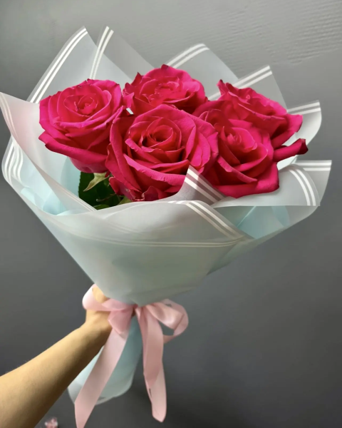 Насыщенный малиновый оттенок лепестков притягивает взгляд и придаёт композиции глубину, символизируя сильные чувства, восхищение и искренние эмоции. Аккуратная упаковка подчёркивает форму букета и делает его современным и эффектным. Такой букет станет запоминающимся подарком, способным передать самые тёплые и яркие чувства.