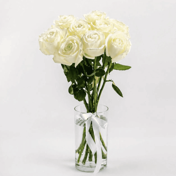 Букет из 9 белых роз, перевязанный изящной атласной лентой, - это символ чистоты, искренности и утончённой элегантности. Белоснежные бутоны выглядят благородно и свежо, создавая ощущение лёгкости и гармонии в каждом цветке.