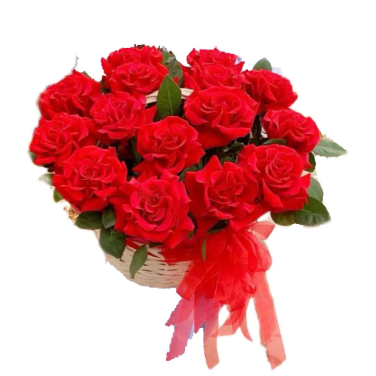 Вариант—Стандарт - 15 роз, зелень, корзина, оазис
