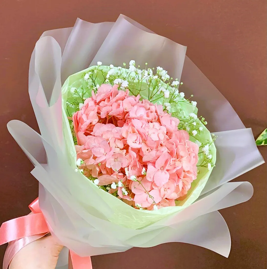 • Мини - гортензия - 1 штуки,гипсофила,упаковка,лента