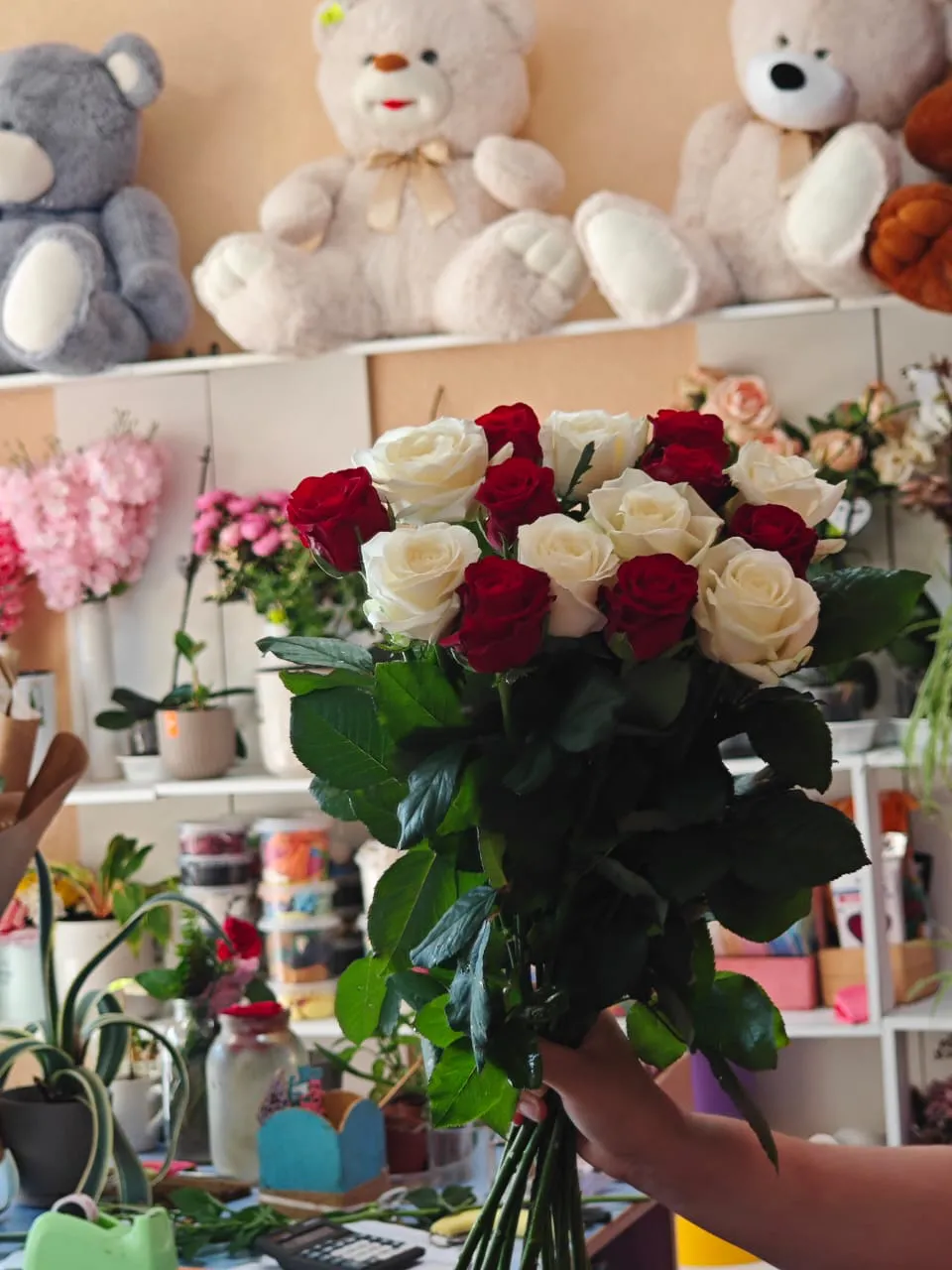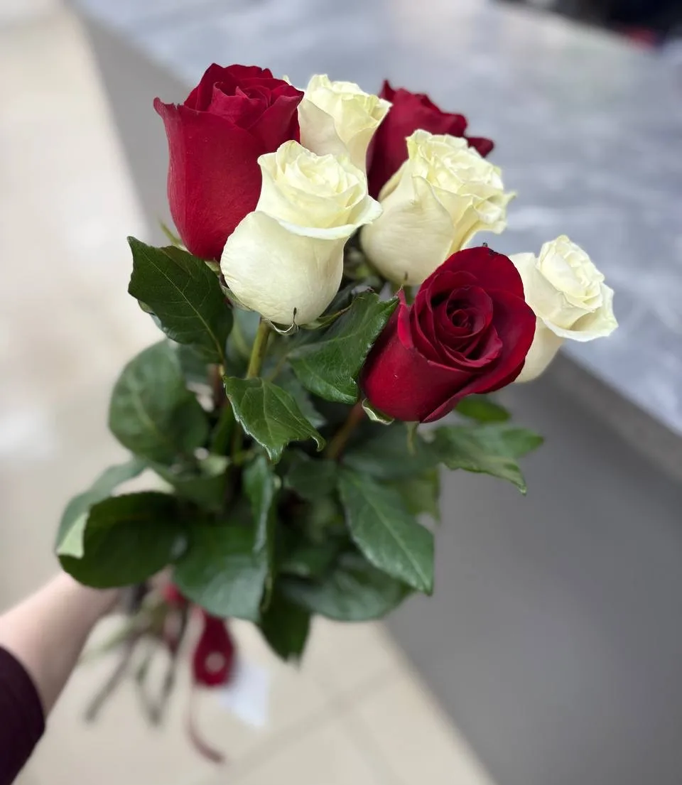 Букеты из красных и белых роз