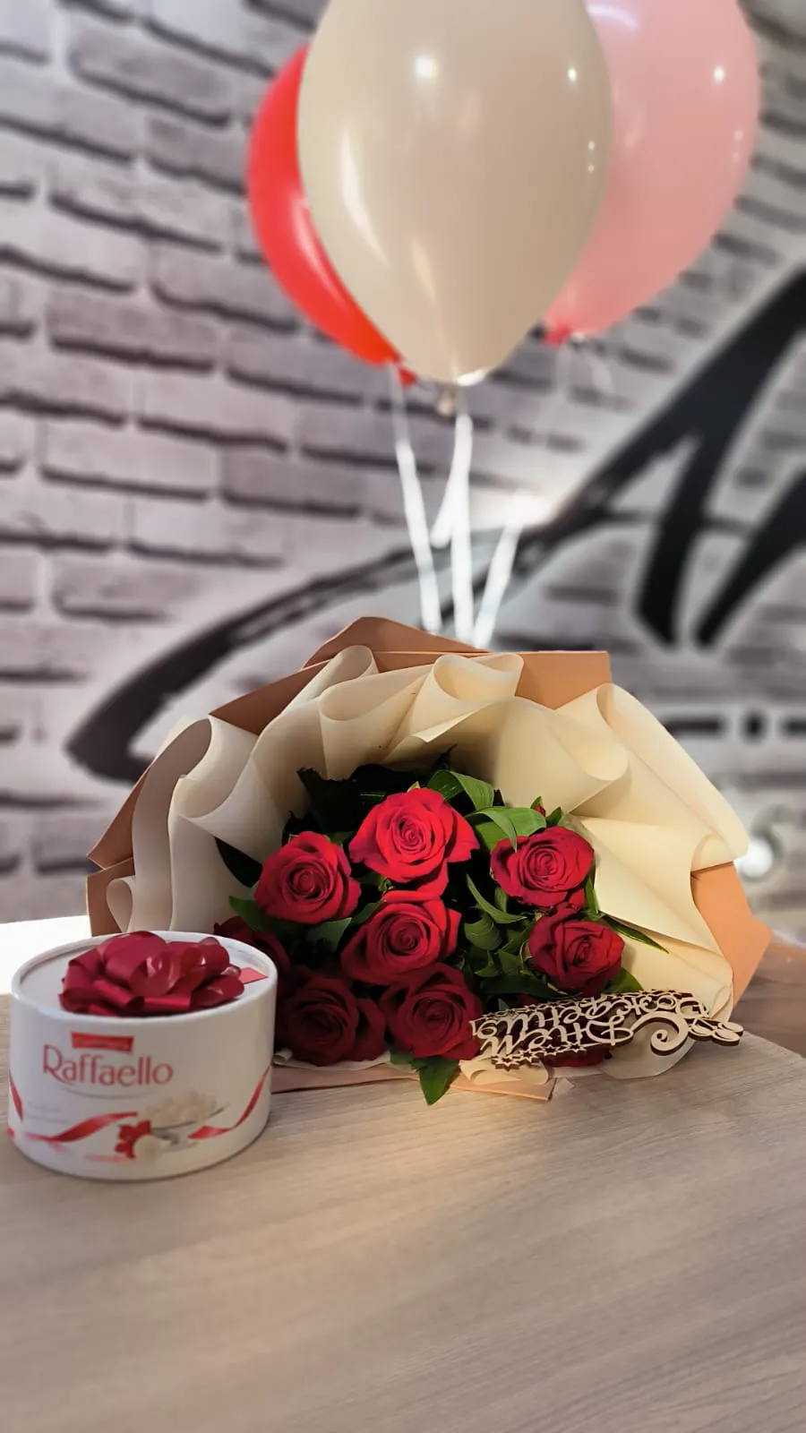 Красные розы,зелень,топпер ,упаковка,лента |