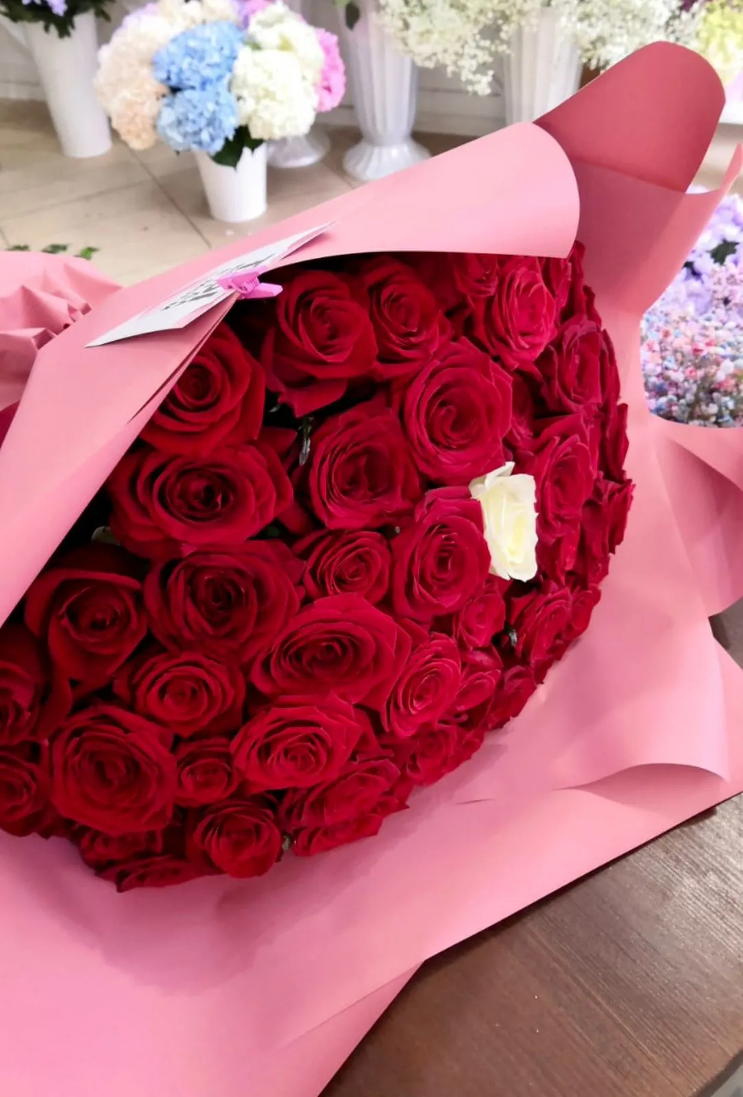 - Делюкс(101 роза, упаковка, лента)