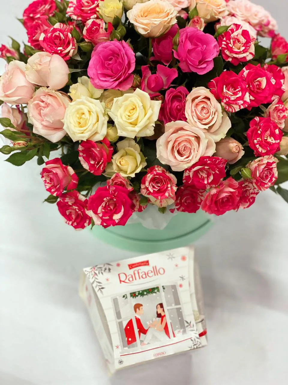 • Стандарт - 11 кустовых роз, коробка, оазис
