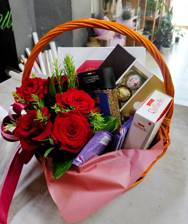 —Корзина роз с конфетами