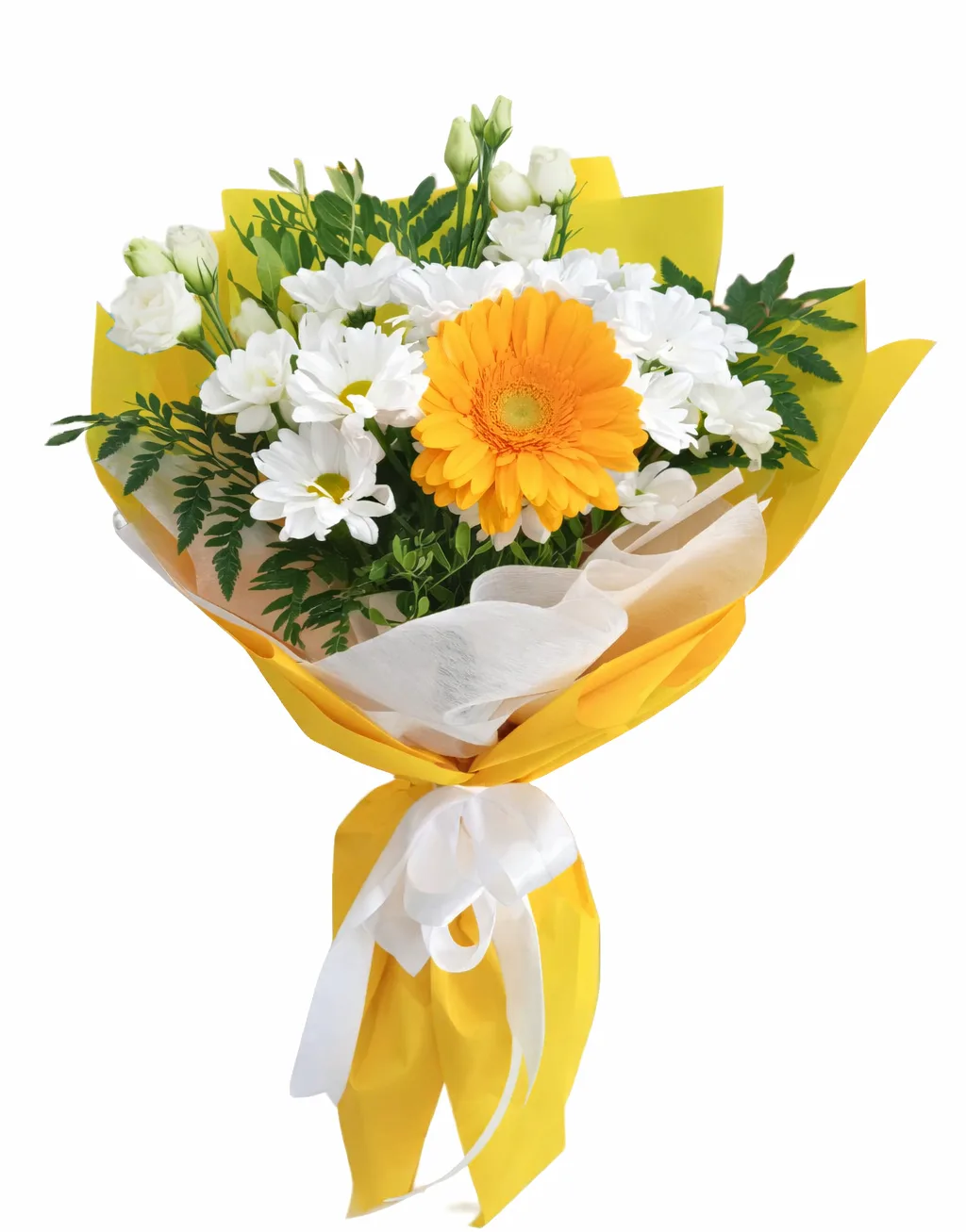 Жёлтая упаковка усиливает ощущение тепла и радости, делая букет по-настоящему ярким и запоминающимся. Идеальный подарок, чтобы подарить улыбку и хорошее настроение.