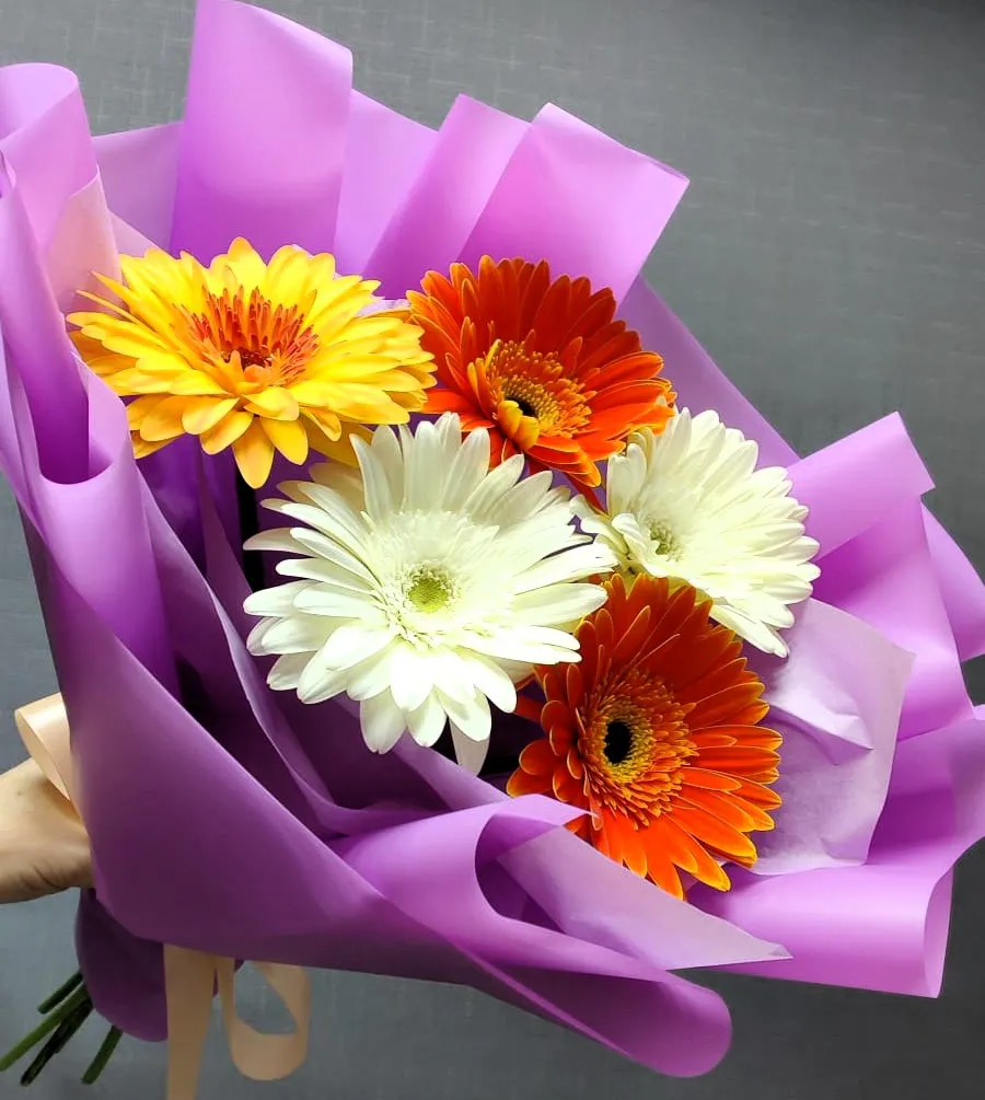 Букет из гербер микс — это истинное произведение искусства, способное украсить любой интерьер и поднять настроение. Яркие и жизнерадостные цветы герберы, объединенные в красочный микс, создают атмосферу радости и света. Каждый цветок в букете символизирует оптимизм и счастье, делая этот букет идеальным подарком для любого события — будь то день рождения, юбилей или просто желание порадовать близкого человека.