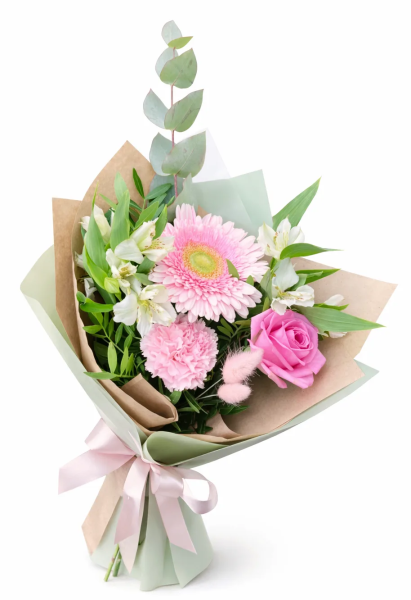 Нежный и гармоничный букет в бело-розовой палитре очаровывает своей мягкостью и романтичным настроением. Изящная роза придаёт композиции утончённость, а нежно-розовая гербера добавляет лёгкость и живую энергию, создавая идеальный баланс нежности и выразительности.