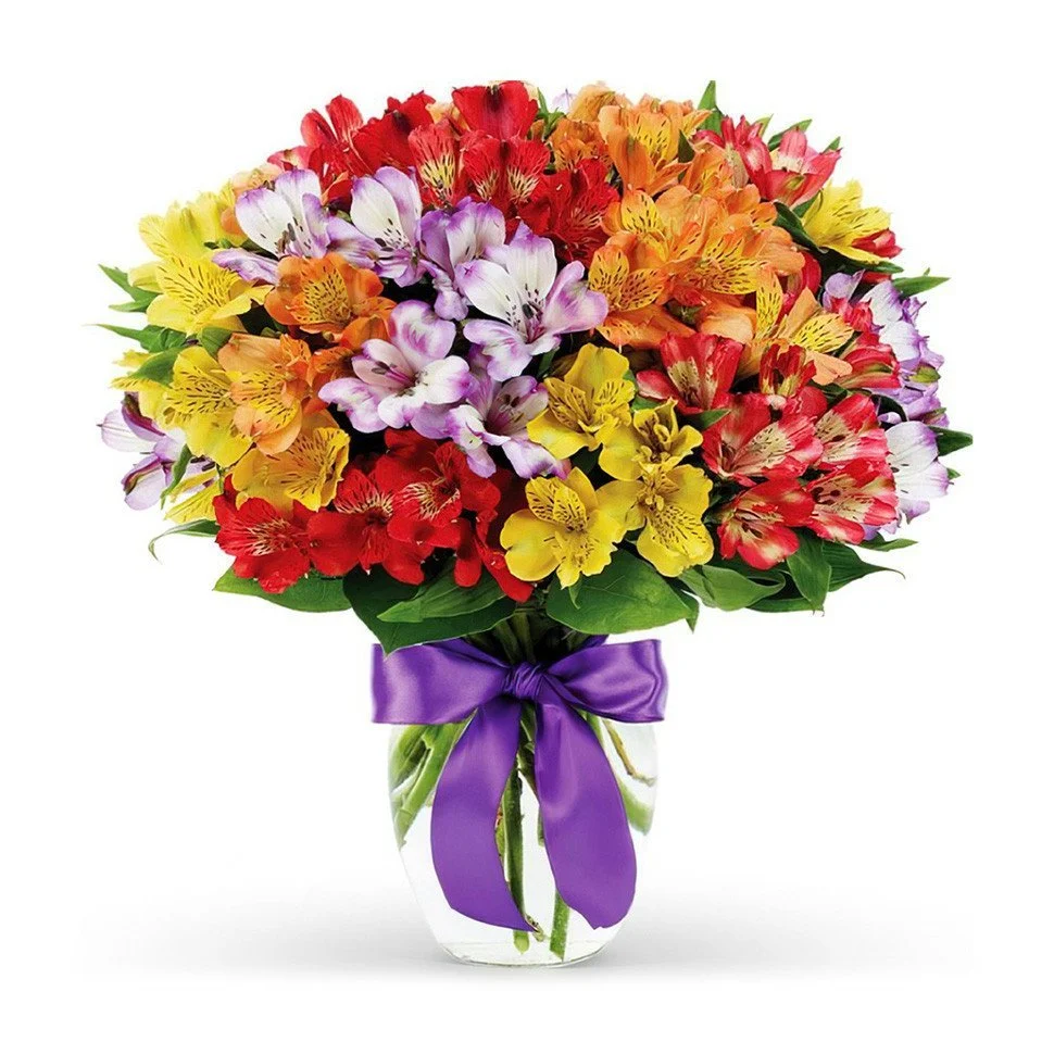 альстромерии., упаковка, лента |