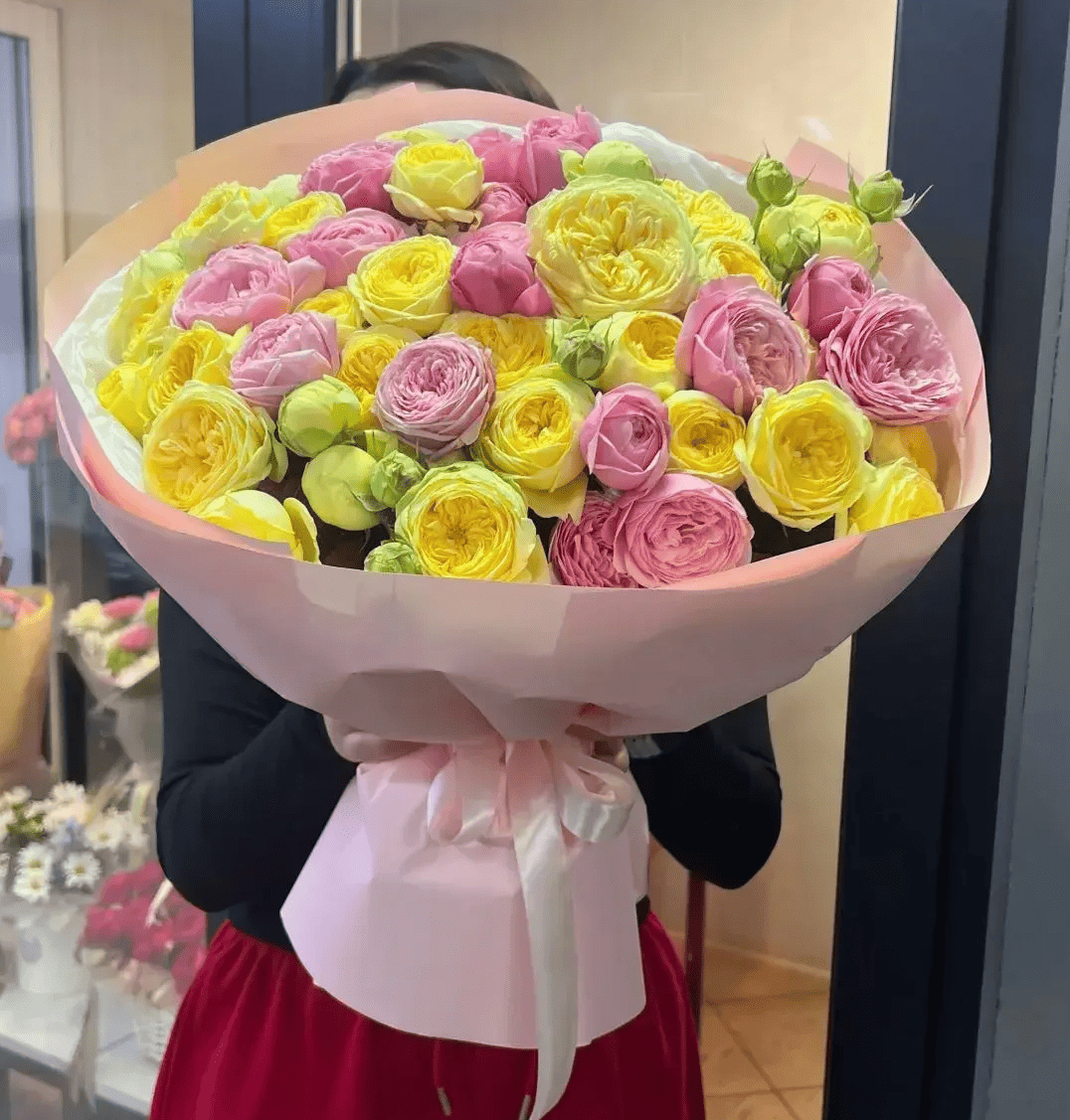 Пионовидные розы символизируют любовь, изящество и благородство чувств. Их роскошная форма и мягкие оттенки создают атмосферу праздника и радости, что делает такой букет идеальным подарком для самых трепетных моментов жизни — от романтических свиданий до торжественных событий.